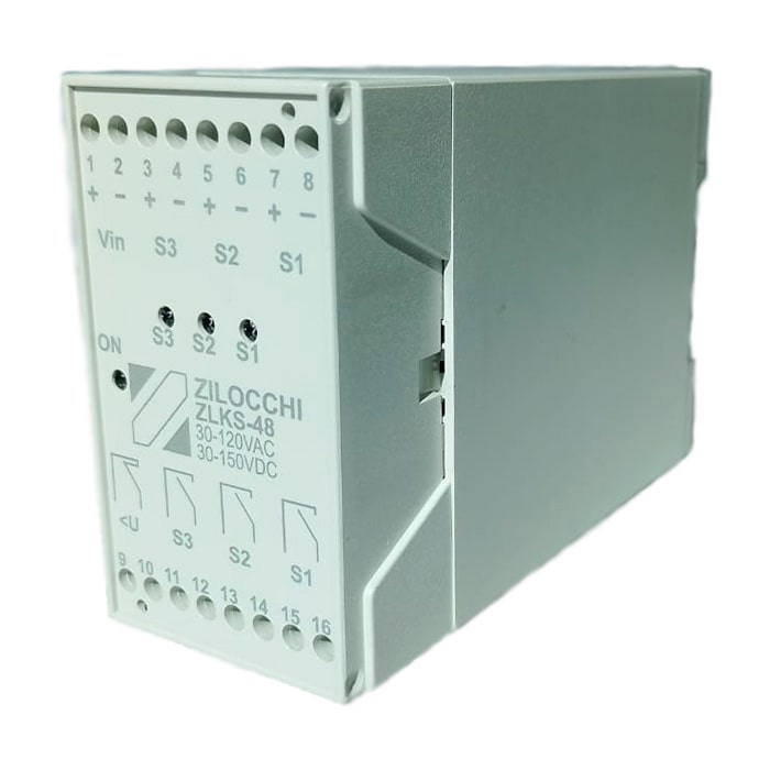 Uma única unidade do modelo ZLKS-48 possui a vantagem de supervisionar até 3 bobinas simultâneas e independentes, além de sinalizar o monitoramento através de led´s (para melhor identificação da bobina) e operar com exclusivo range de tensão, variando entre 30 à 120VAC ou 30 à 150VDC.